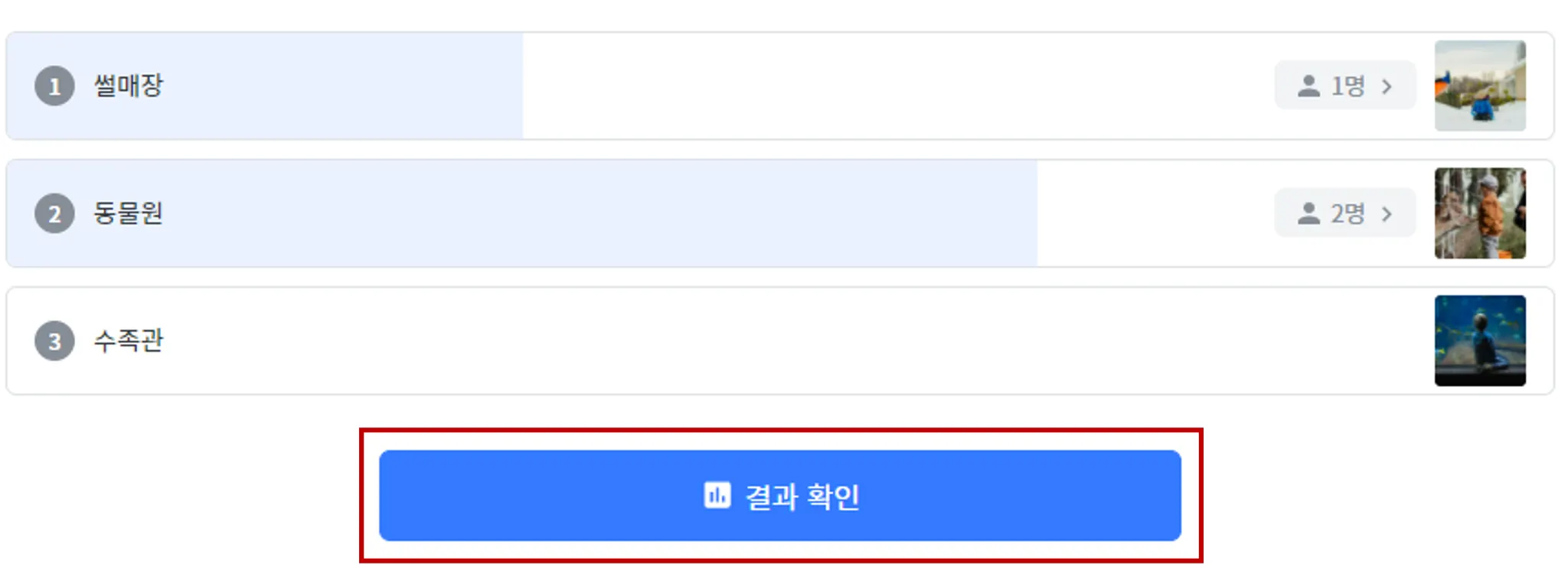 필요에 따라 결과 확인 기능을 통해 투표 항목별 참여자 목록을 한눈에 확인 할 수 있습니다.