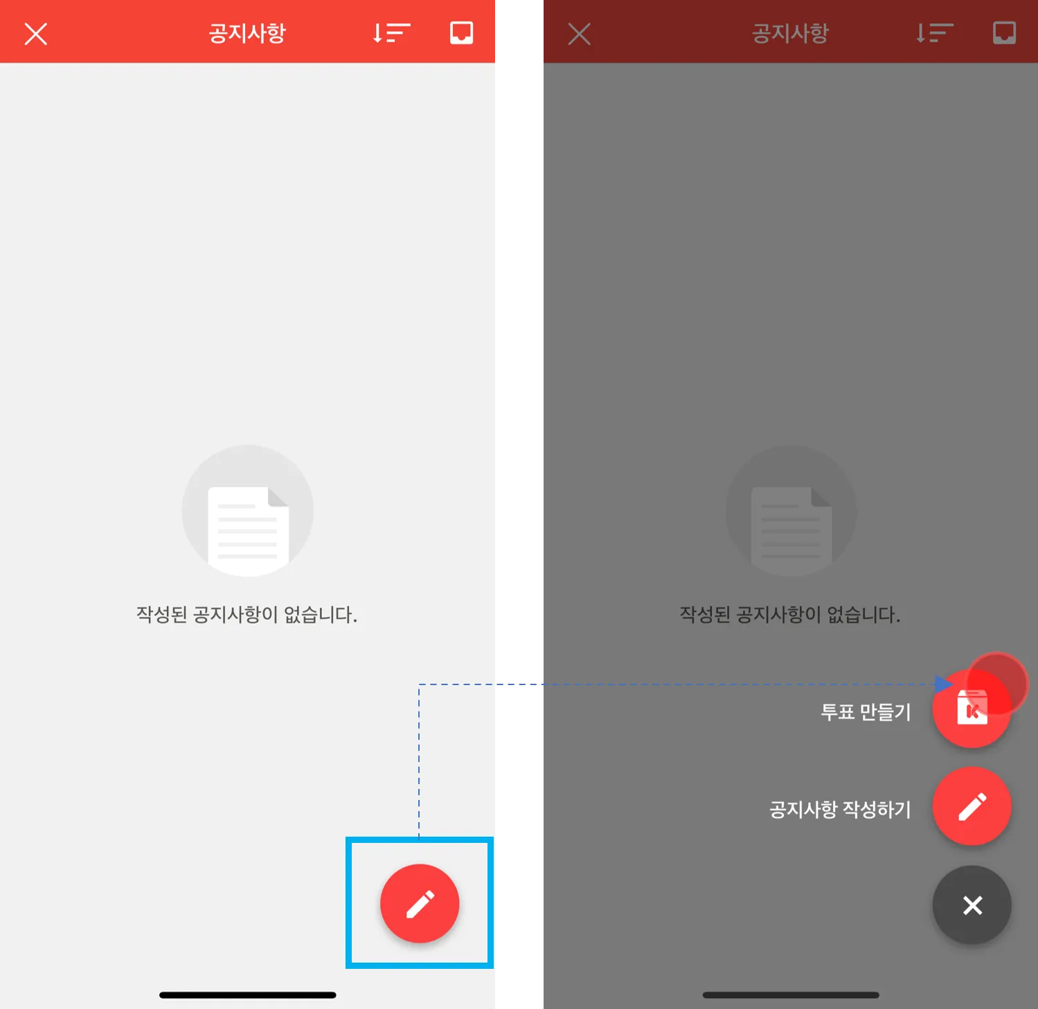 댓글 기능을 통해서는 해당 투표 공지를 받은 멤버들과 소통할 수 있습니다.