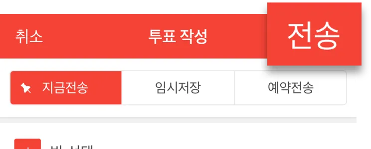 전송 을 누르면 투표가 즉시 발송되어 진행됩니다.