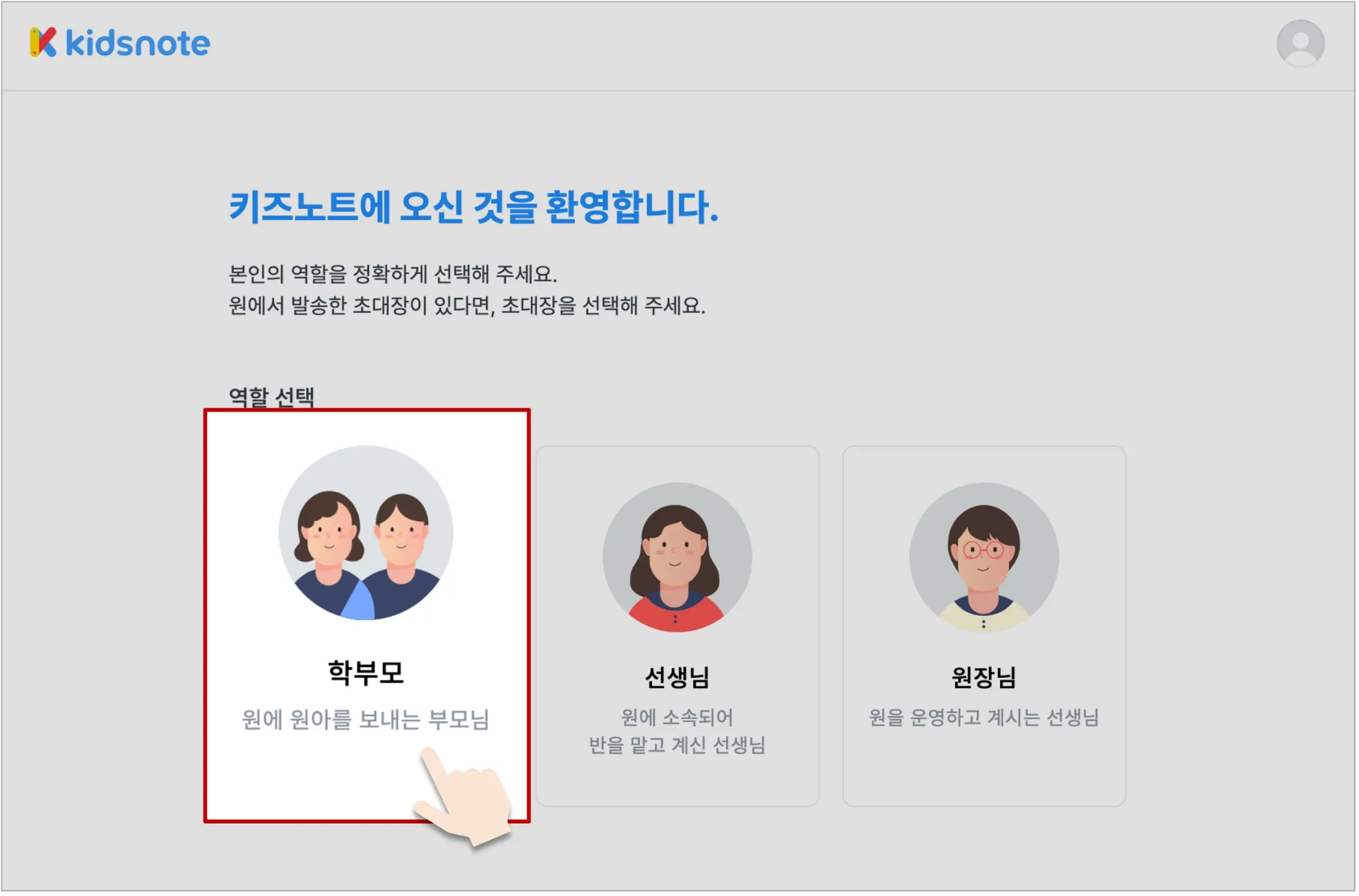 역할등록 페이지에서 학부모님을 선택해주세요.