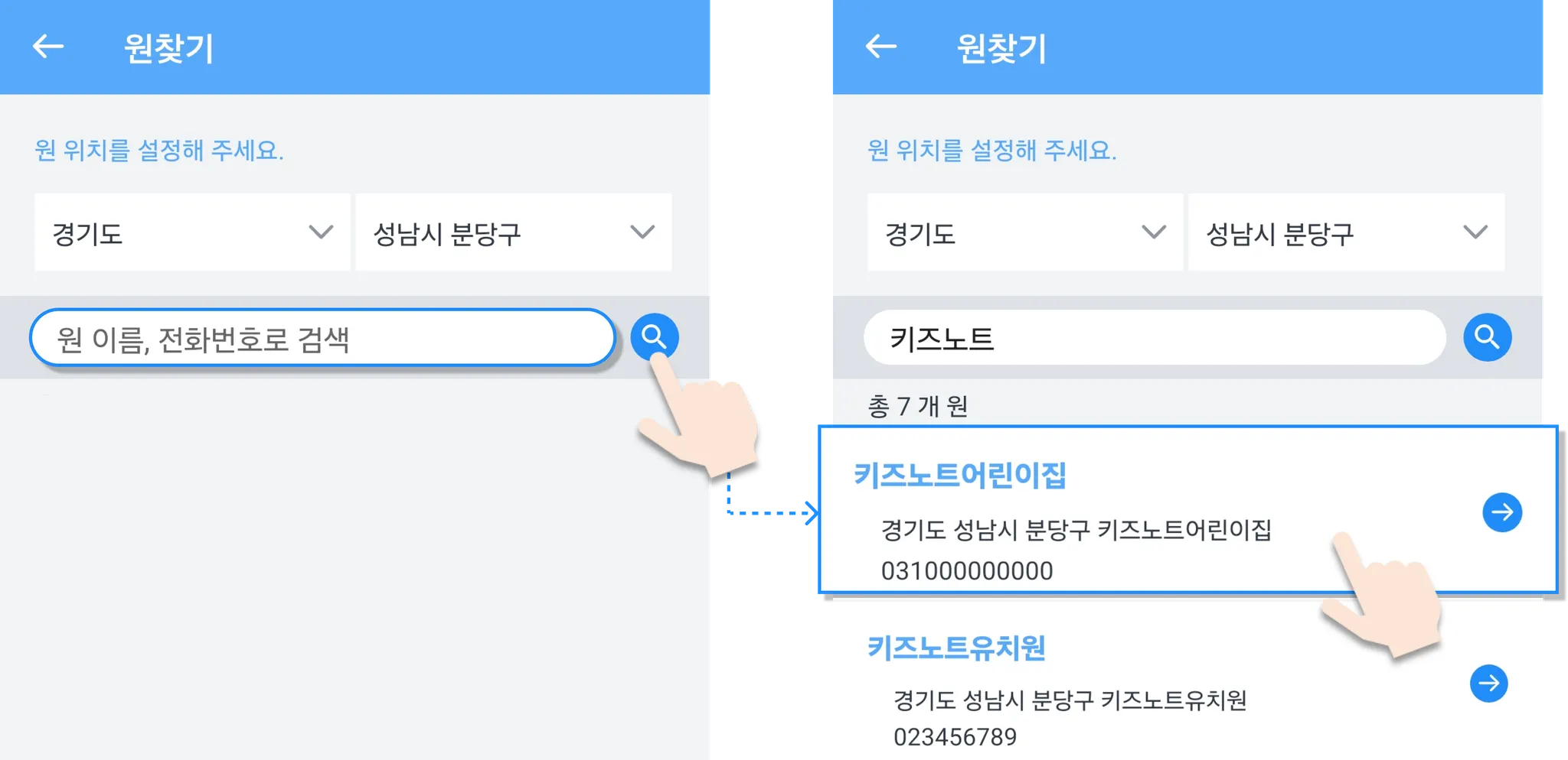 원 이름/전화번호로 등록할 원을 검색 후, 선택해 주세요.
