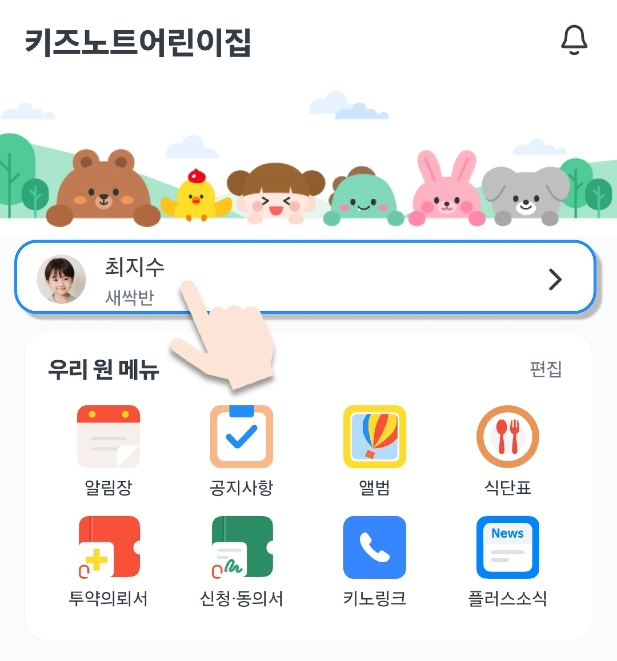키즈노트 가입부터 자녀 등록까지 모두 진행되었다면 본격적으로 키즈노트를 사용할 수 있습니다!