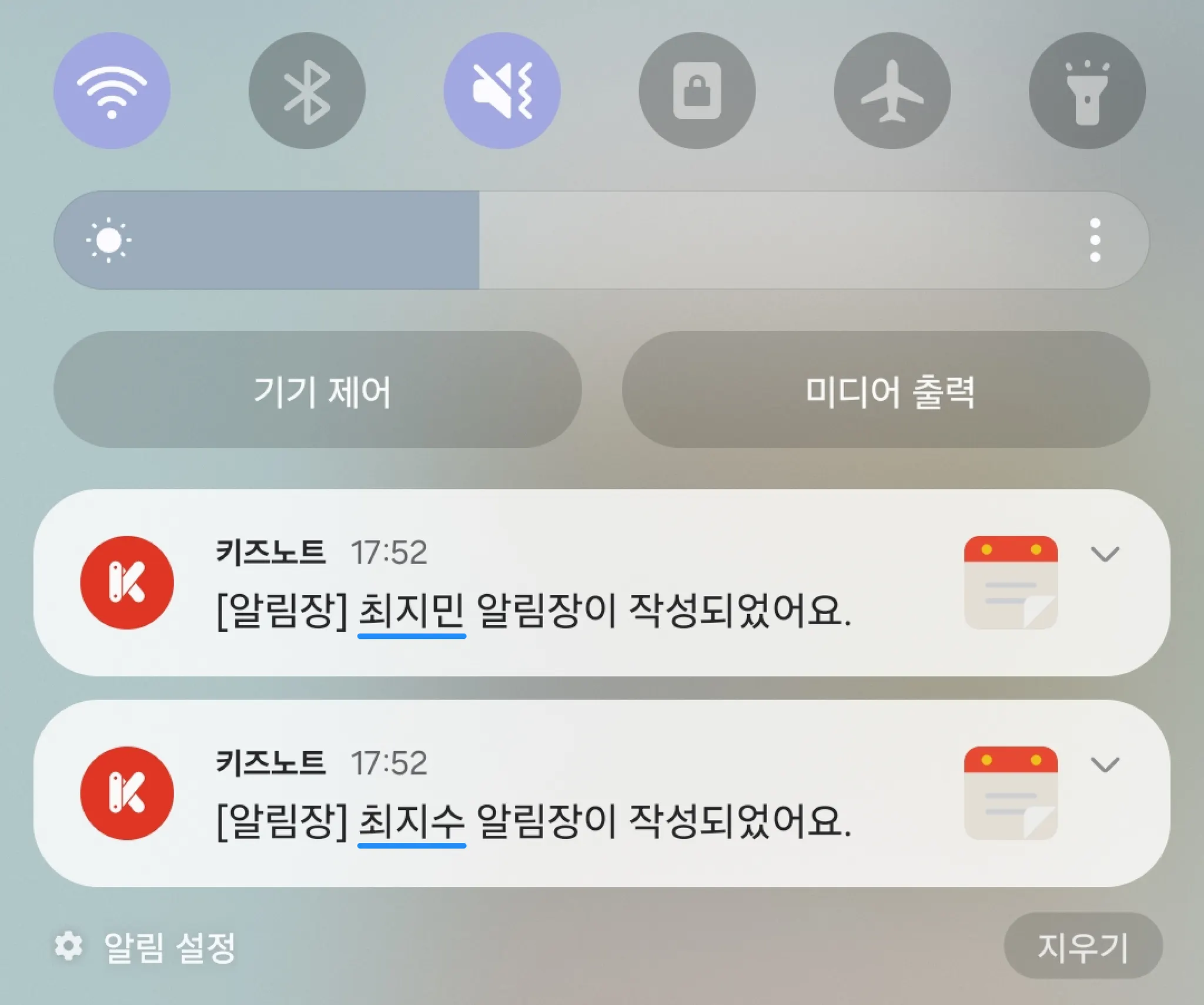 아이들을 여러 명 등록해도, 아이들 별 알람을 함께 받을 수 있어요.