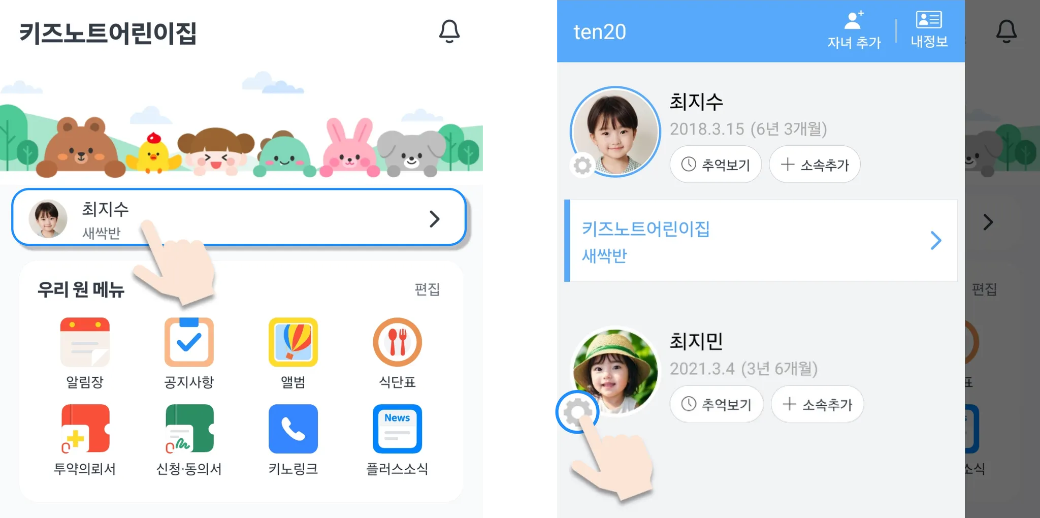 키즈노트에서는 한 ID에 최대 10명의 자녀를 등록할 수 있어요.