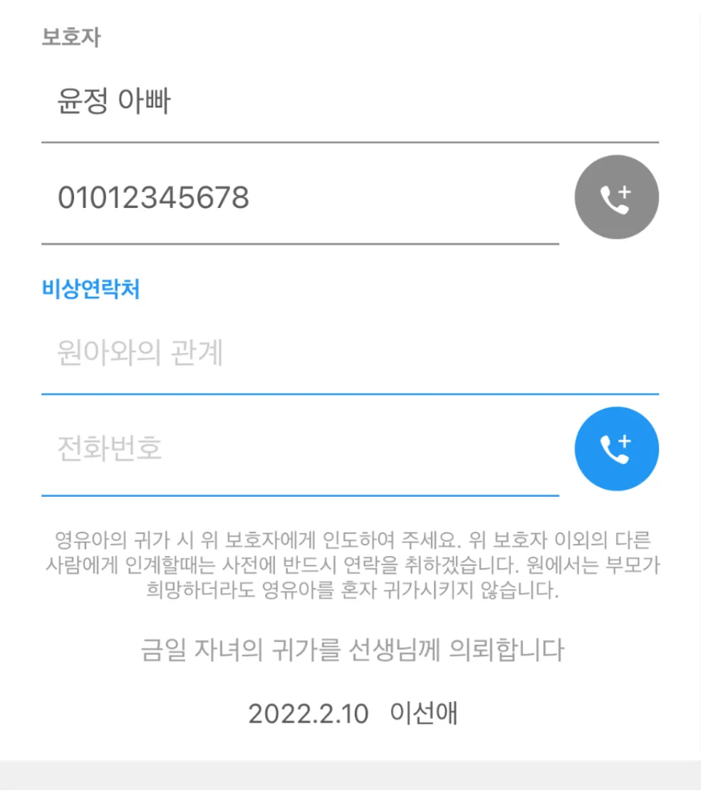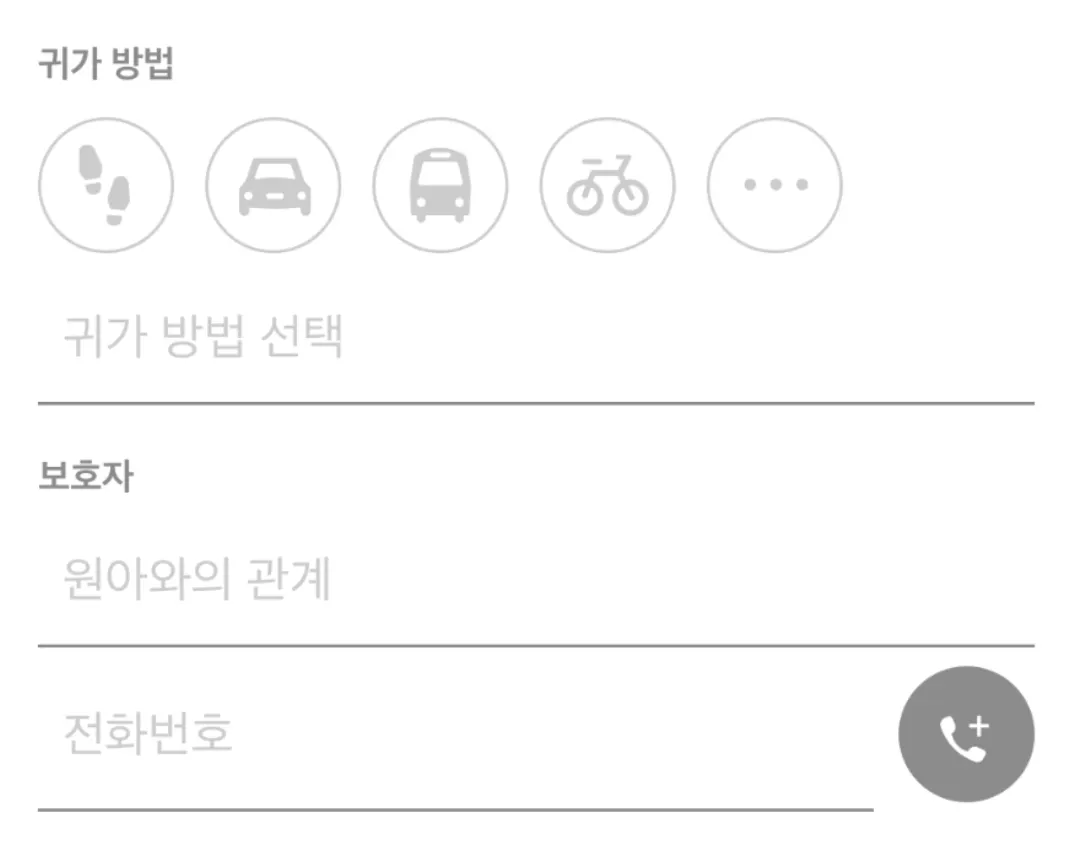 귀가 방법과 보호자 정보 입력은 필수항목입니다.