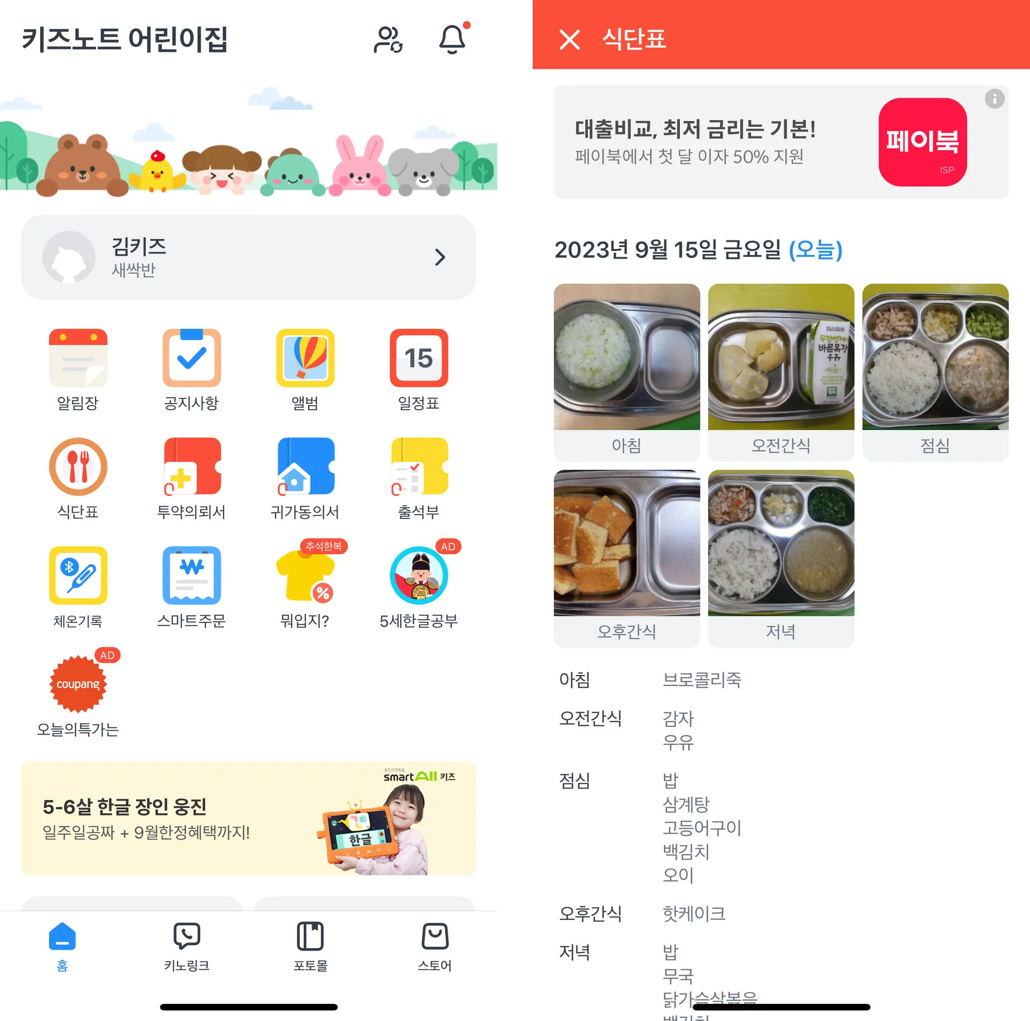 선생님이 올려주시는 우리 아이의 식단과 메뉴를 확인할 수 있습니다.