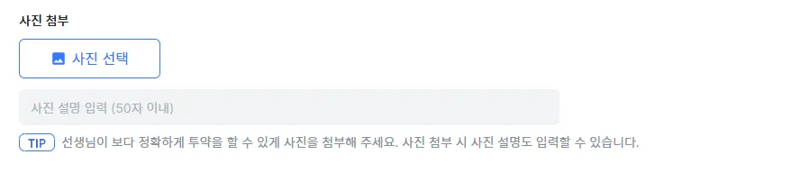 (선택) 사진 첨부 후 사진 설명을 입력할 수 있습니다.(50자 이내)