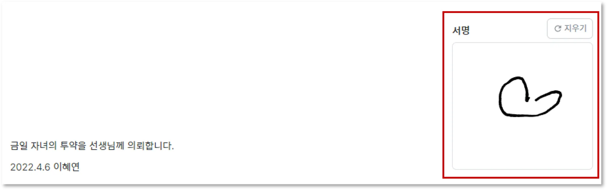 (필수) 투약의뢰서 내용을 모두 작성했으면 서명을 해주세요.