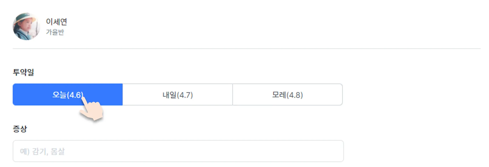 - 투약일은 오늘, 내일, 모레 날짜만 지정할 수 있습니다.