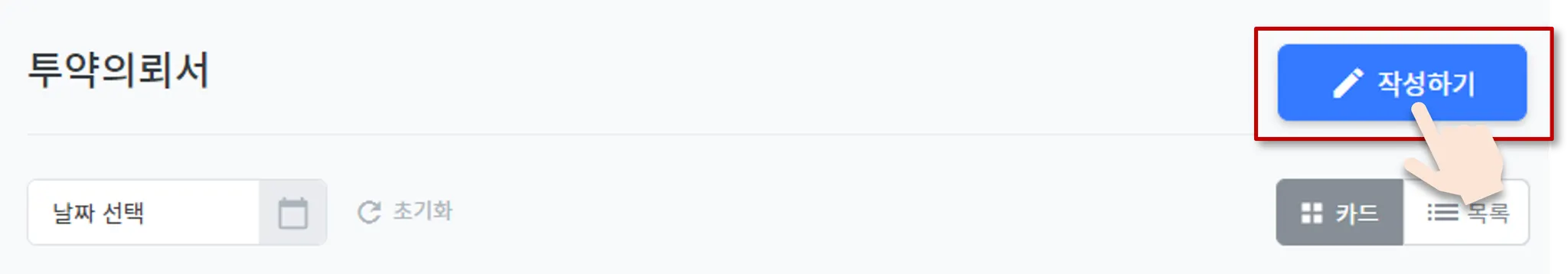 작성하기를 클릭하여 투약의뢰서를 작성합니다.