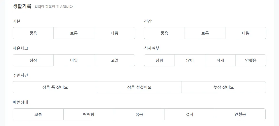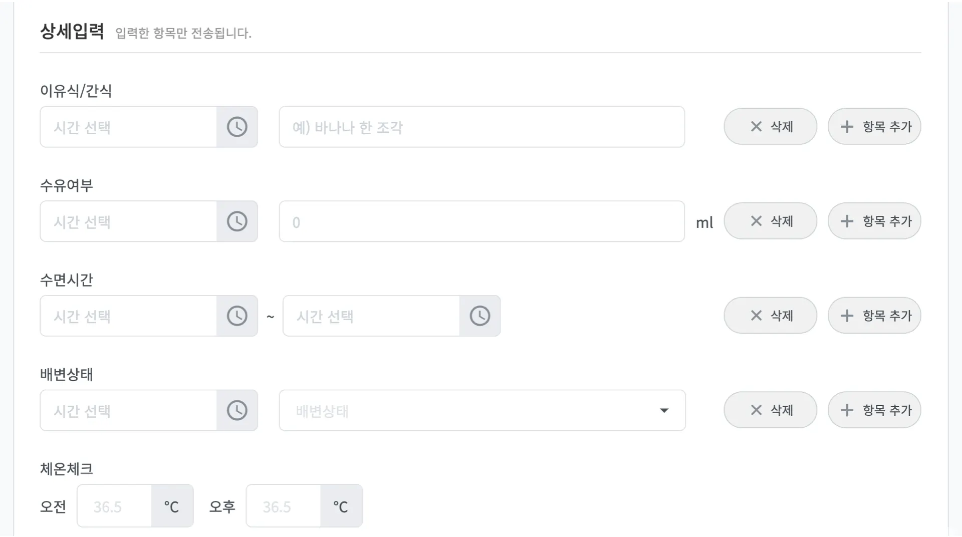 생활기록과 상세입력은 작성하신 항목만 알림장에 추가되기 때문에, 꼭 모든 입력 사항을 다 작성하지 않으셔도 됩니다.