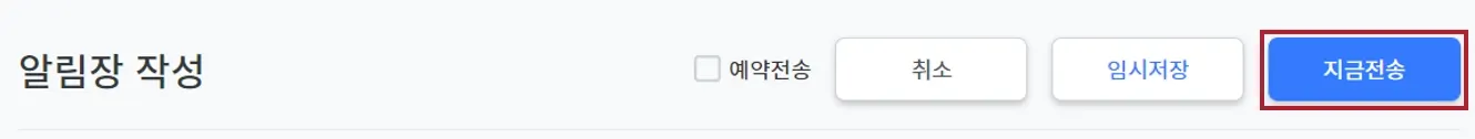 지금전송 을 누르면 알림장이 즉시 발송됩니다.