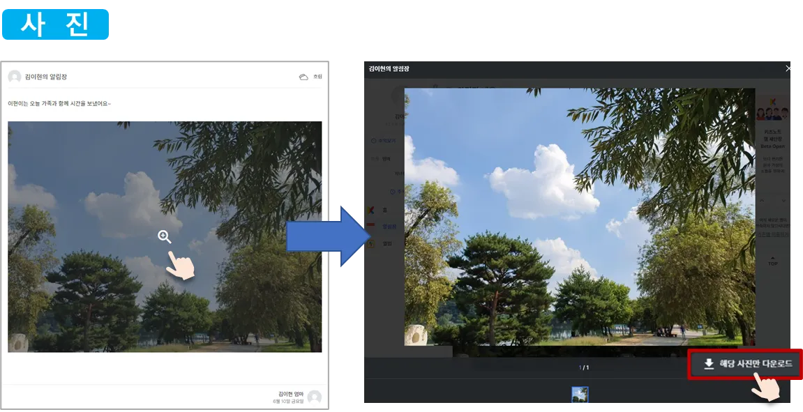 사진을 클릭하면 하단에 다운로드 버튼이 확인됩니다.