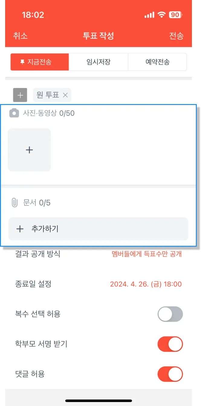 투표 시 안내할 사진·동영상/문서가 있다면 함께 첨부해 주세요.