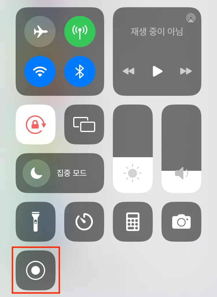 이제 화면을 아래에서 위로 스크롤해 제어 센터를 열어 추가된 녹화버튼을 눌러주세요.