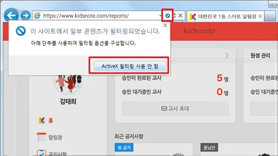 하/지/만파일명을 변경했음에도 불구하고, 여전히 파일 첨부가 안된다면,사용자 환경에서 'Active X 필터링 사용' or'호환성 보기를 확인해 보세요.'Active X 필터링 사용' 이 켜져있을 경우(파란색), 상단에 해당 아이콘을 눌러 'Active X 필터링 사용 안함'(회색) 으로 변경해 주세요.
