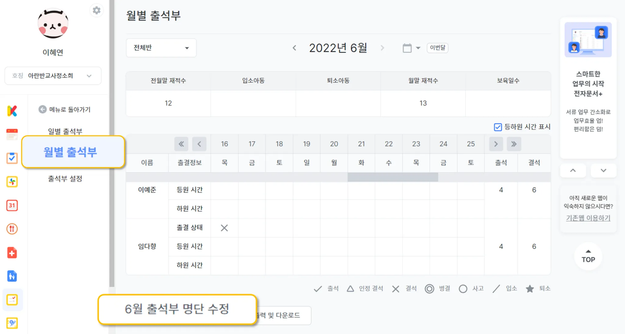 학기 중간에 입소한 원아들은 출석부에 추가하는 방법 알려드릴게요!