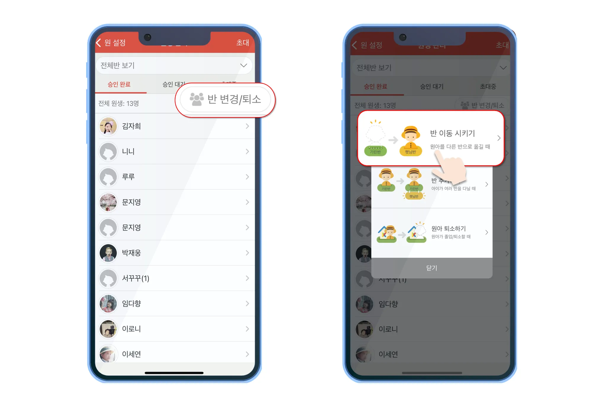 원아 반 이동 전 반 정보 관리부터 살펴보겠습니다.