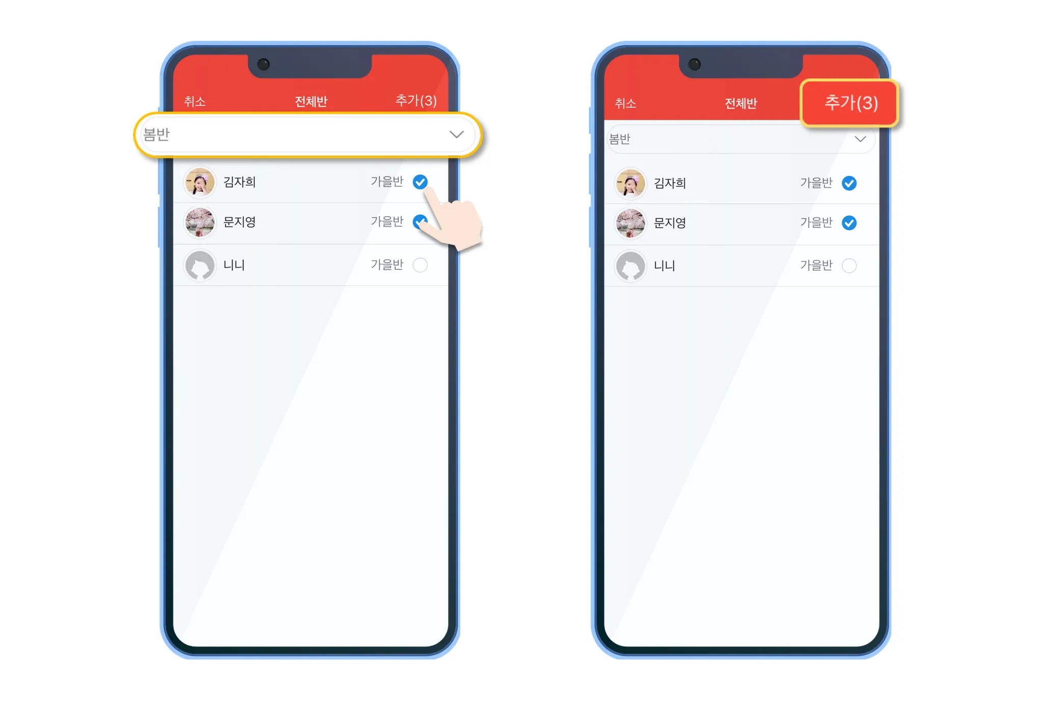 가을반 원아가 봄반에도 소속되어야 한다면 반 추가하기를 선택해주세요.