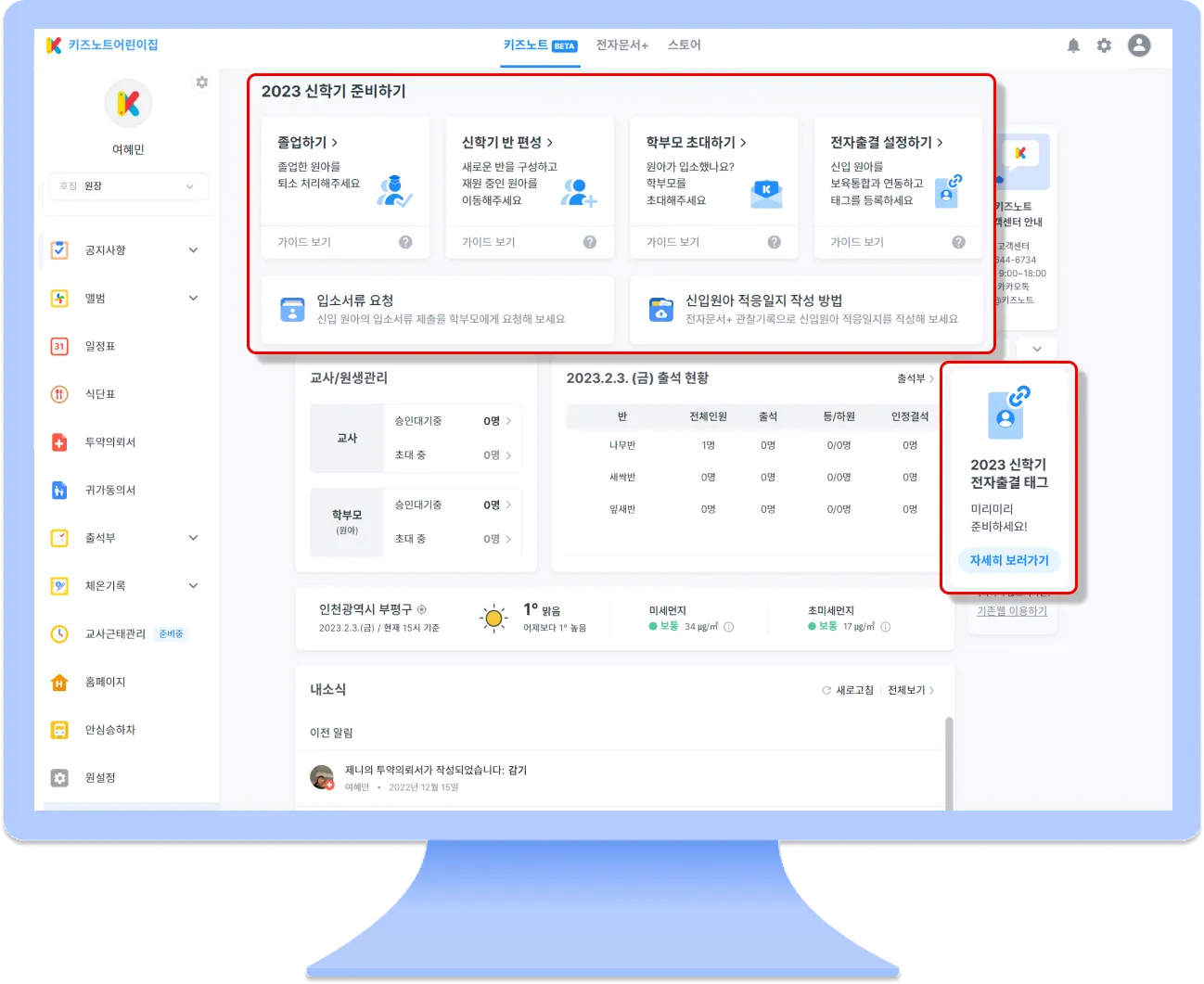 2023년 신학기 준비를 키즈노트가 도와드리기 위해 준비한 2월 업데이트 소식을 소개해드립니다.