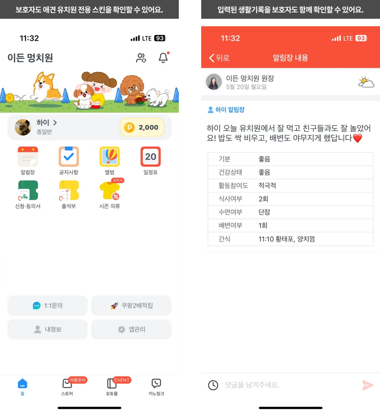 애견 유치원이라면? 애견 유치원 전용 알림장을 작성할 수 있어요!