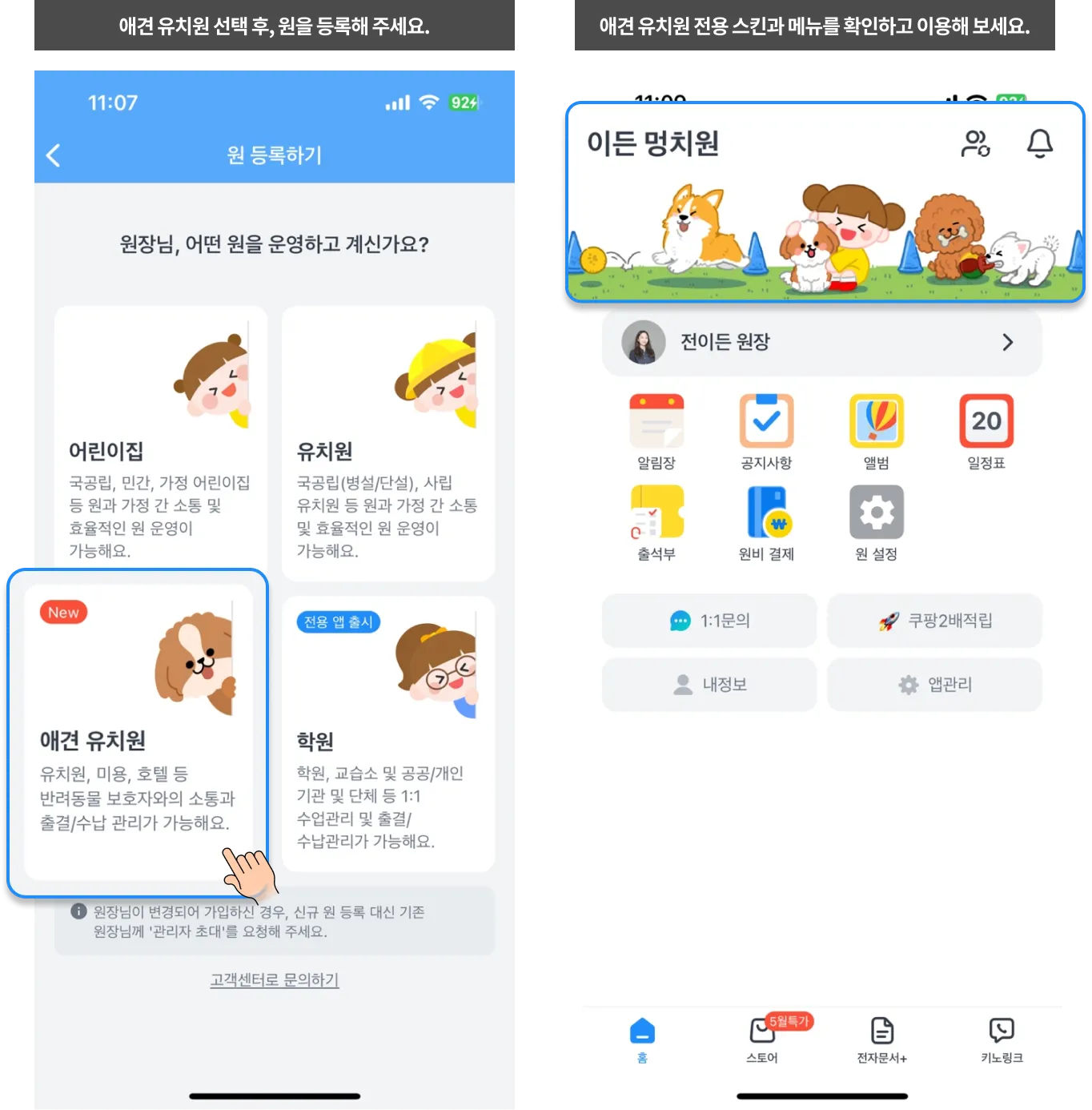 애견 유치원을 위한 타입 추가와, 맞춤형 기능들이 업데이트 되었습니다! 지금 바로 최신 버전으로 업데이트 후 다양한 기능을 만나보세요!